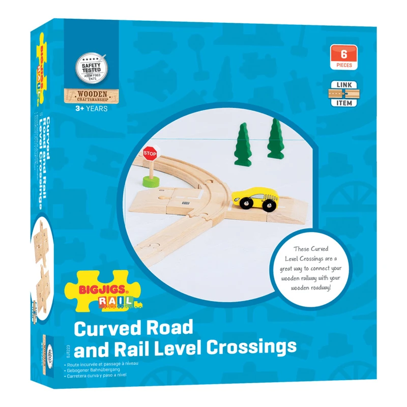 Breng uw Bigjigs weg- en spoornetwerken samen met dit slimme accessoire. De dubbelzijdige houten gebogen spoorwegovergang kan eenvoudig worden aangesloten op onze bestverkochte Acht-figuur-treinset of kan creatief worden gebruikt door jongeren die zelf interessante lay-outs willen ontwerpen! Een Bigjigs weg- en spoorverbindingsitem! Verbindt het spoor en de rijbaan, zodat kinderen genoeg hebben om mee te werken. Bestaat uit 6 speelstukken. De meeste andere grote merken houten spoorwegen zijn compatibel met Bigjigs Rail. Gemaakt van hoogwaardige, verantwoorde materialen. Voldoet aan de huidige Europese veiligheidsnormen.