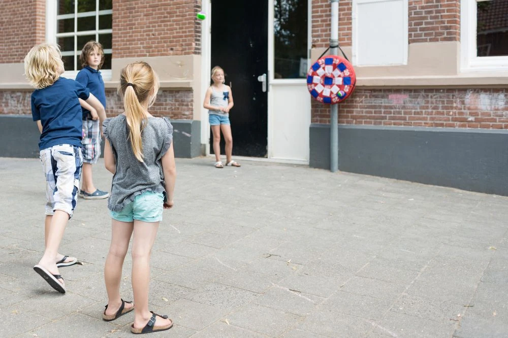 BS Klittenband Darts is een opblaasbaar dartspel met 3 tennisballen en gemakkelijk op te hangen aan het koord. Probeer zo veel mogelijk punten te verzamelen door de ballen op het opblaasbaar dartspel te gooien. Door het klitteband op het dartbord blijven de ballen plakken. Het spel is gemakkelijk op te hangen en weer op te bergen.