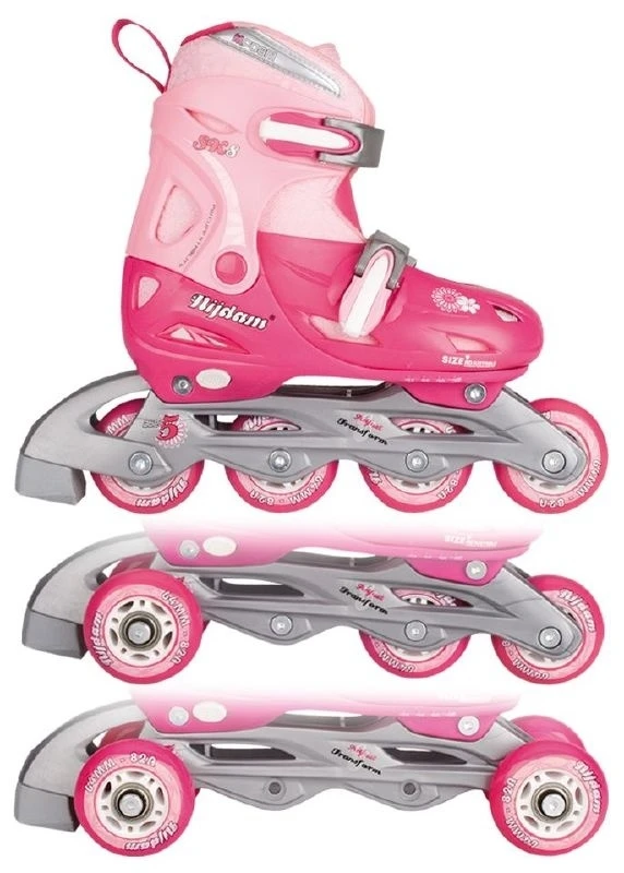 De wielen van deze skates zijn te verstellen in verschillende standen; quad (2 x 2), trike (1 x 1 x 2) en inline 1 x 1 x 1 x 1. Beschikbaar in 3 kleurstellingen.