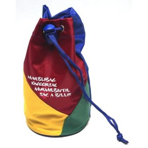 Zware kwaliteit knikkerzak uit nylon met de kleuren rood/blauw/geel/groen.