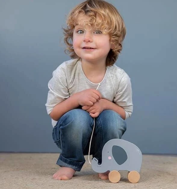 Ga samen op pad met het trekdier van Little Dutch. Trek de lieve olifant voort aan het touwtje en hij hobbelt vrolijk met je mee. Leuk te combineren met de andere trekdieren: de ijsbeer en de tijger. Vanaf 12 maanden.