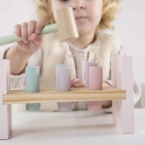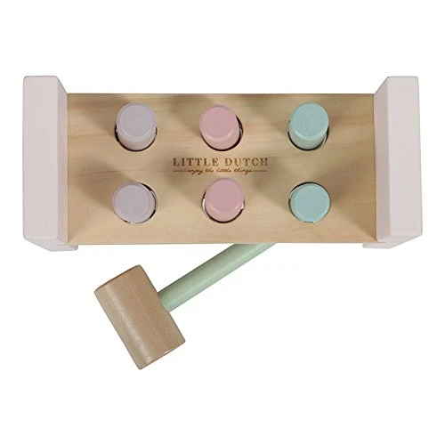 Tik tik tik! De stoere Little Dutch houten hamerbank is voor jongens én meisjes leuk om mee te spelen. Je kindje kan de staafjes één voor één met de hamer dieper in dit leuke hamerbankje slaan. Met 6 gekleurde staafjes is dit een zeer goede oefening voor de motoriek van je kindje. Zijn alle staafjes erin geslagen? Draai het bankje om en ze kunnen weer opnieuw beginnen. Hier zijn ze wel even zoet mee!