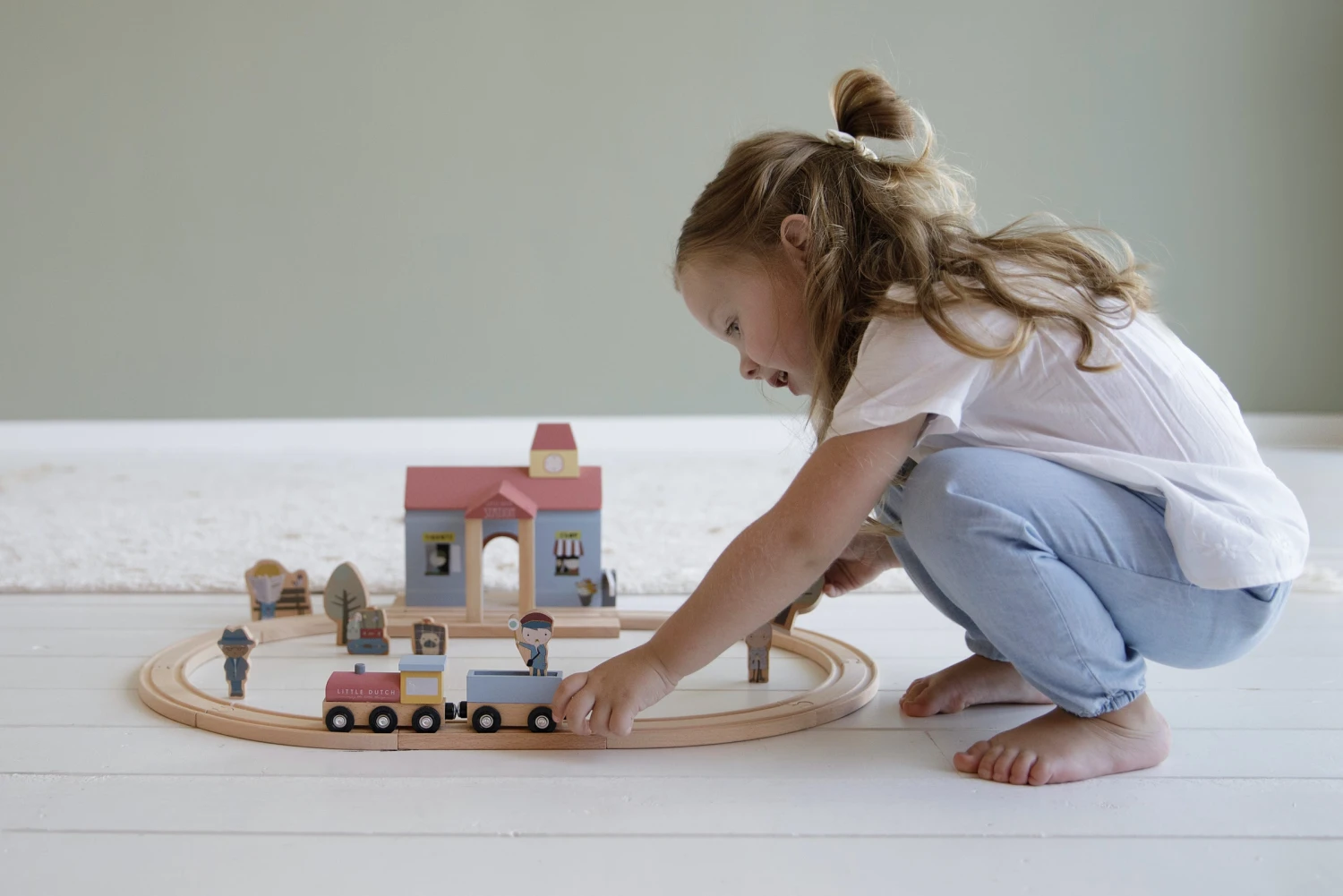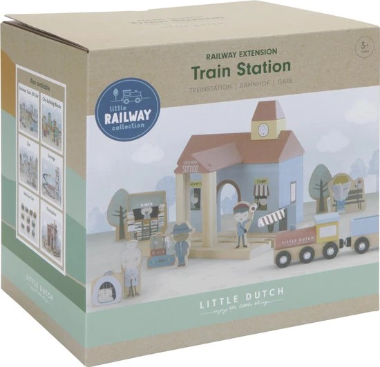 Laten we op een avontuurlijke trip gaan! Pak je spullen, neem je huisdier mee en spring op de volgende trein. De uitbreiding bevat een kiosk, conducteur, reizigers, bomen, koffers, kattenmandje, stationsklok, trein, locomotief en treinstation. Dit houten treinstation is één van de vele speelsets die aan de treinbaan XXL van Little Dutch gekoppeld kan worden. De houten figuren hebben gedetailleerde illustraties aan beide kanten en kunnen in de treinwagon geplaatst worden voor een leuke rit. Je maakt het treinstation helemaal af met de treinbaan XXL en de uitbreidingssets voor uren speelplezier. x