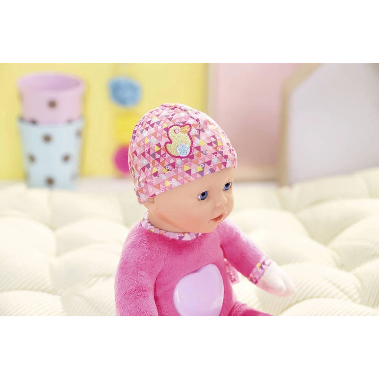 De Babyborn heeft een zacht lichaam zodat er lekker mee geknuffeld kan worden. Wanneer er op de ster op haar buik gedrukt wordt, gaat het nachtlampje aan en speelt er een slaapliedje af.