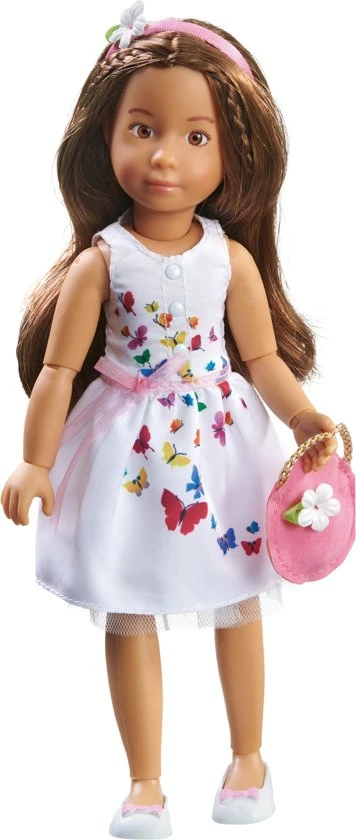 Bijzonder aan de Kruselings poppen is dat de armen en benen buigzaam zijn ter hoogte van de pols, elleboog, schouder, bekken en knieën. Zo kunnen de poppen zelfstandig staan en zitten en kunnen ze nog een heel arsenaal aan poses aannemen. Dat maakt het speelplezier des te groter! Wat ook anders is bij deze poppen is dat hun lichaam gebaseerd is op een kinderlichaam, geen volwassen lichaam wat bij andere poppen uit dit segment wel vaak het geval is.De pop is 23 cm. groot.